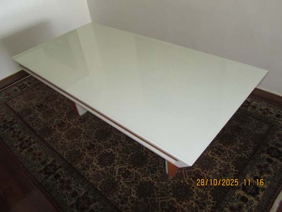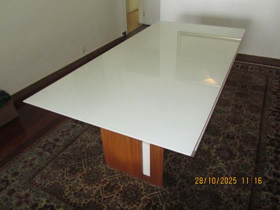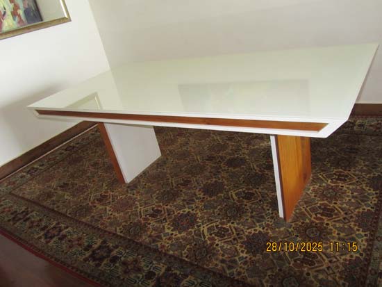 MESA JANTAR MADEIRA LACA BRANCA VIDRO - 2,00 X 1,00