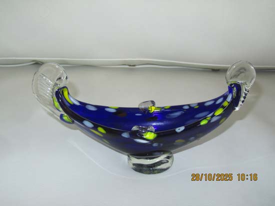 PRATINHO OVAL VIDRO AZUL