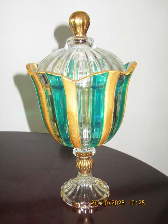 BOMBONIER VIDRO DOURADO VERDE