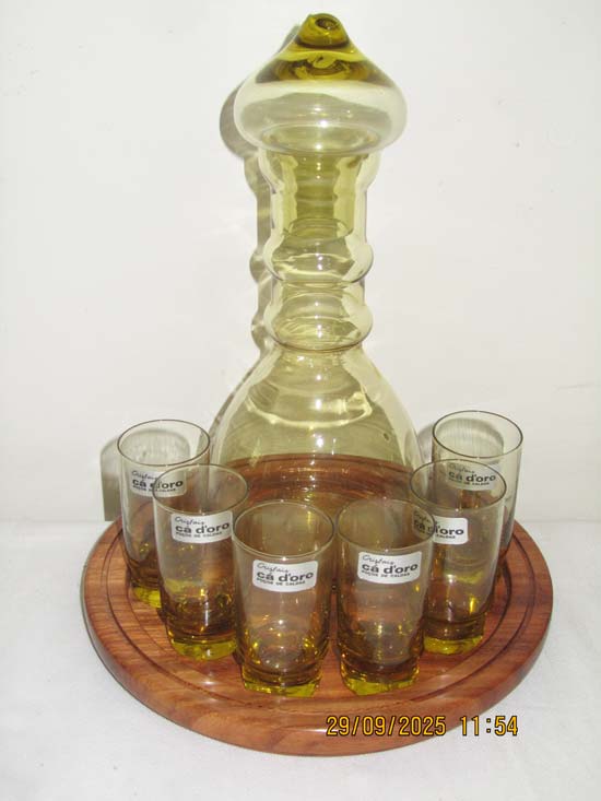 LICOREIRA E 6 COPINHOS AMARELOS VIDRO
