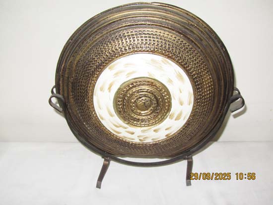 VASO REDONDO CERÂMICA MARROM SUPORTE FERRO