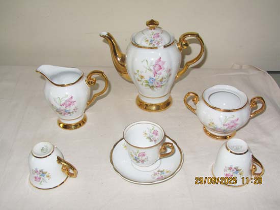 CONJUNTO CAFÉ FRISO OURO PORCELANA