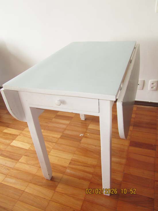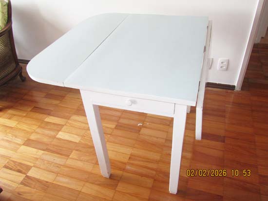 MESA COM ABAS MADEIRA 1 GAVETA AZUL BRANCA - FECHADA 0,90 X 0,55