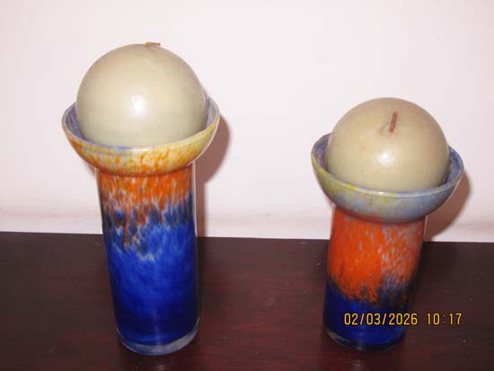 2 PORTA VELAS VIDRO AZUIS