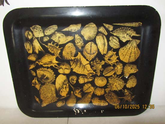 BANDEJA METAL PRETA DOURADA CONCHAS