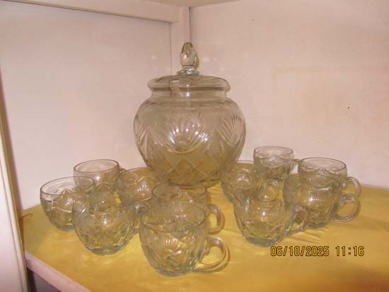 PONCHEIRA E 11 CANECAS VIDRO LAPIDADOS
