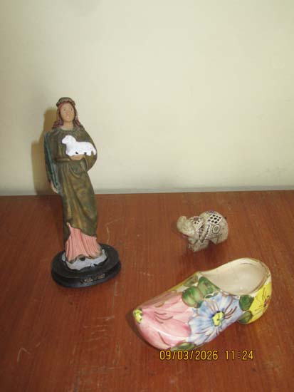 ESTATUETA MULHER BURRINHO CERÂMICA
