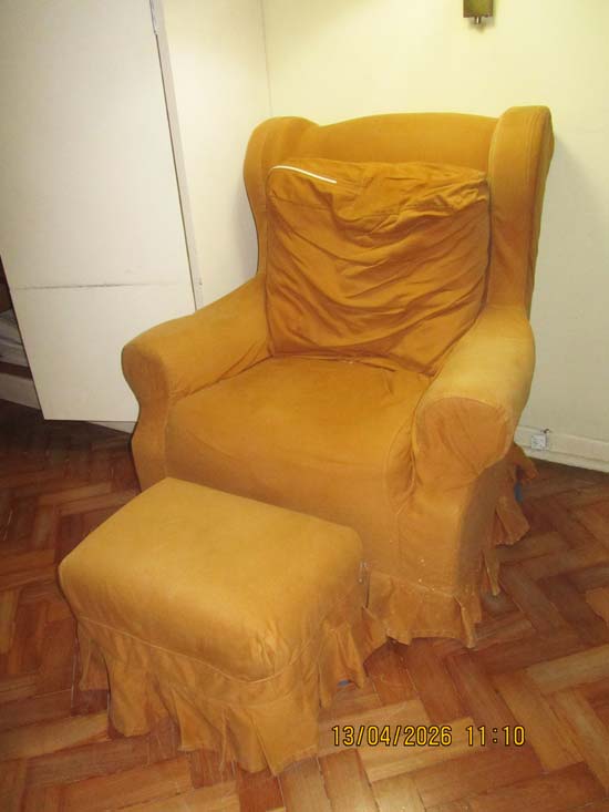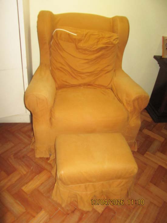 POLTRONA BRAÇO BERGER E PUFF AZUIS CAPA AMARELA - 0,90 X 0,80
