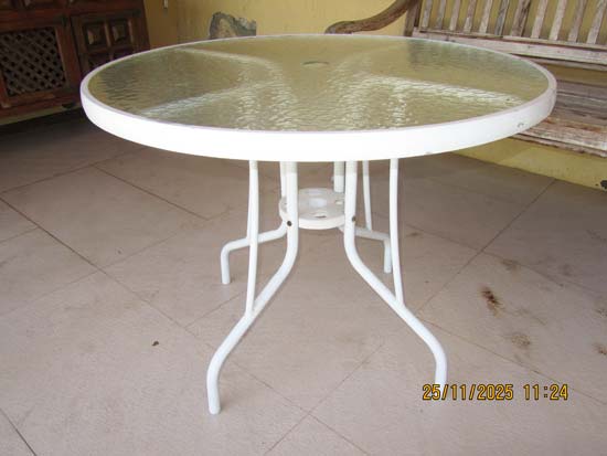MESA JARDIM BR. ALUMÍNIO VIDRO COM FURO DE BARRACA - DIAM. 0,95