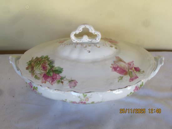 LEGUMEIRA OVAL FLOR ROSA PORCELANA