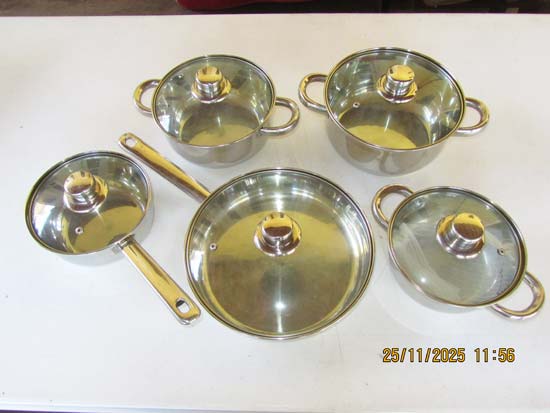 JOGO DE 5 PANELAS INOX TAMPA VIDRO - NA CAIXA