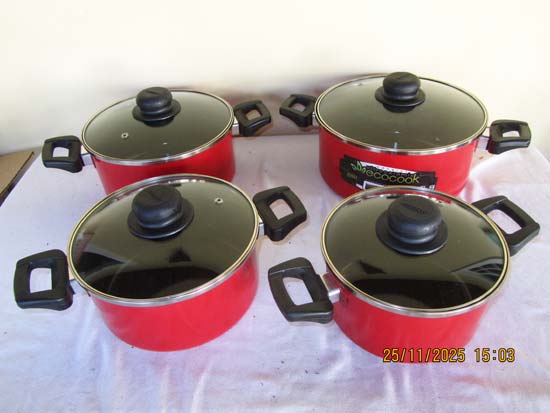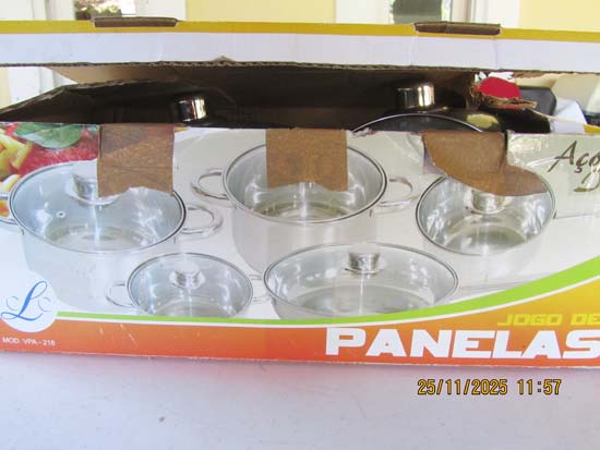 JOGO 4 PANELAS INOX TAMPA VIDRO