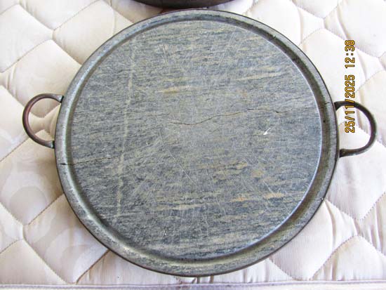 CHAPA PEQ. BANDEJA PEDRA COBRE REDONDA COM ALÇA