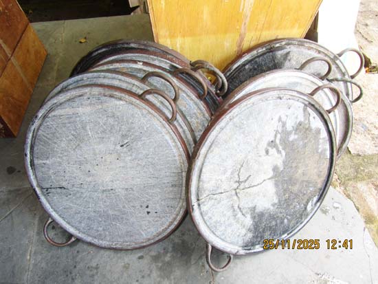 CHAPA (NO ESTADO) BANDEJA PEDRA COBRE REDONDA COM ALÇA