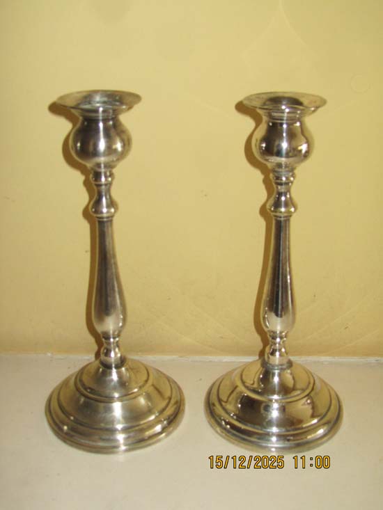 PAR CASTIÇAIS METAL PRATEADO