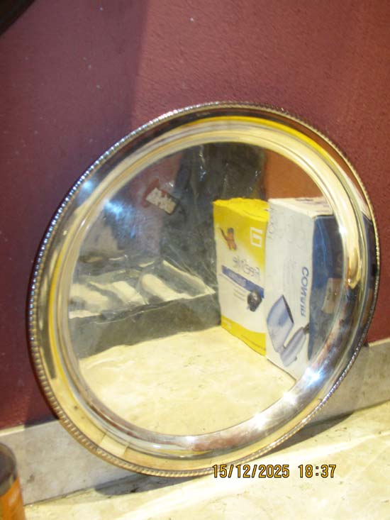CENTRO MESA ESTANHO ESPELHO REDONDO
