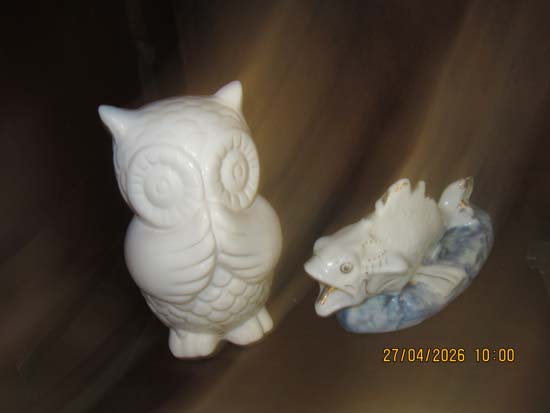 ESTATUETA CORUJA BRANCA CERÂMICA