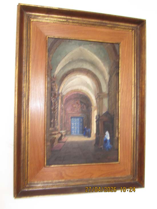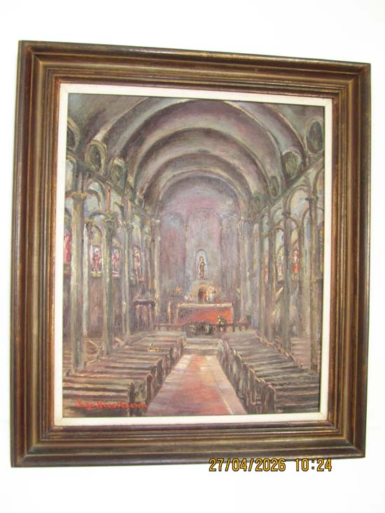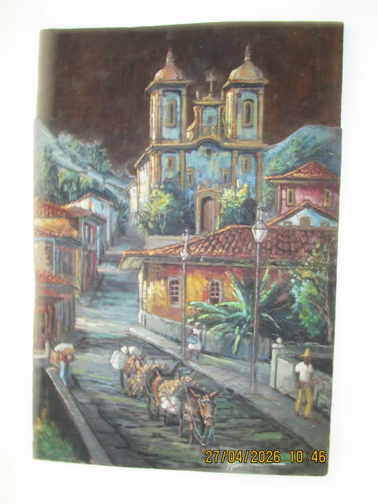 QUADRO IGREJA MADEIRA ENTALHE COLORIDO