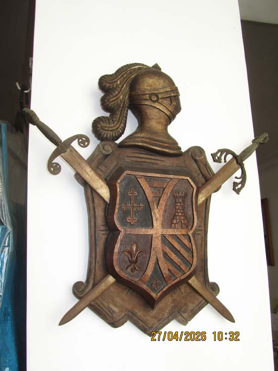 BRASÃO COM ESPADAS MADEIRA DE PAREDE - ENFEITE