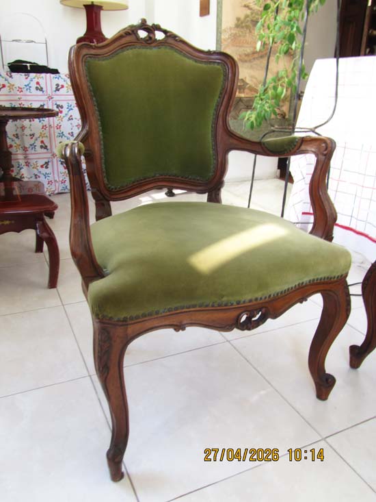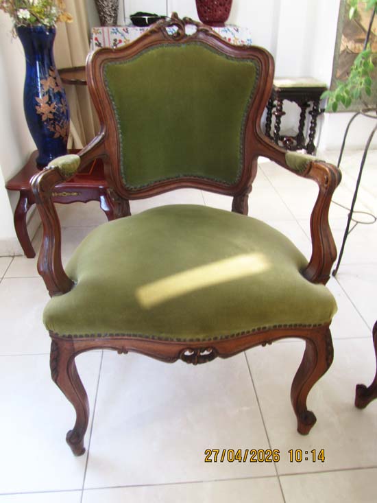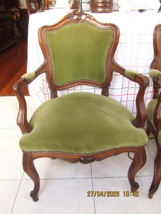 PAR POLTRONAS (VERDES) LUIS XV MADEIRA (DE BRAÇO) - 0,65 X 0,60