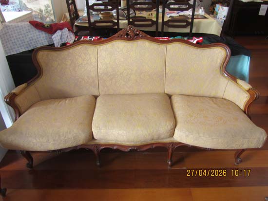 SOFÁ LUIS XV MADEIRA 3 LUGARES - 1,90 X 0,60 (ESTOFADO MARROM)