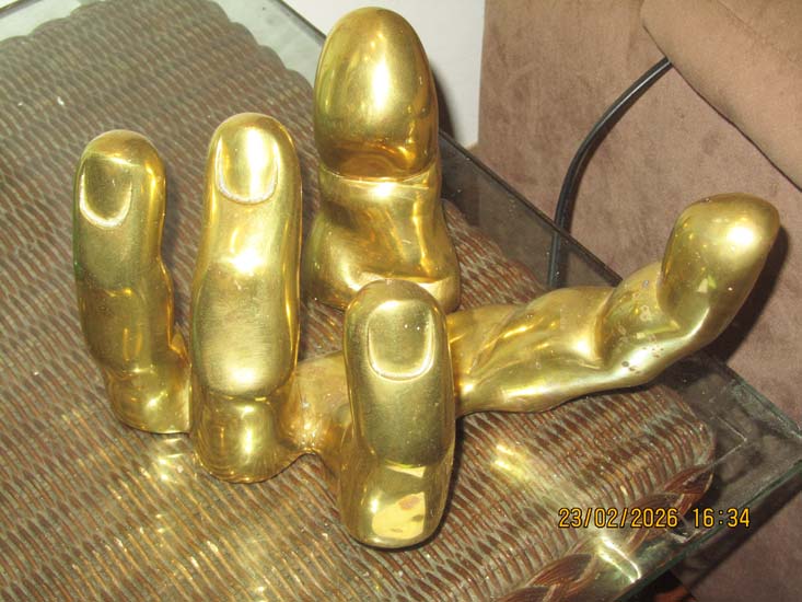 ESCULTURA DOURADA MÃO DEDOS PIETRINA CECACCI