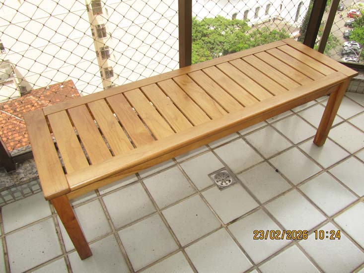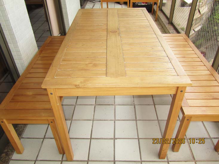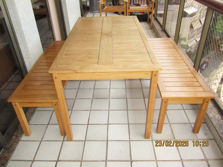 MESA JANTAR MADEIRA RIPAS E 2 BANCOS RET. (MESA 1,50 X 0,80)