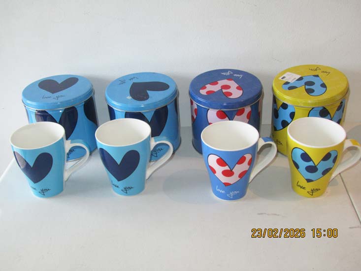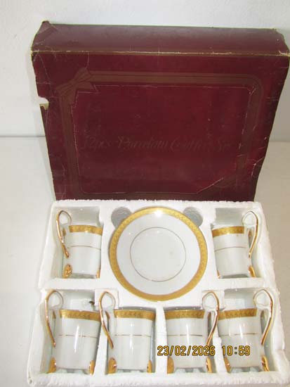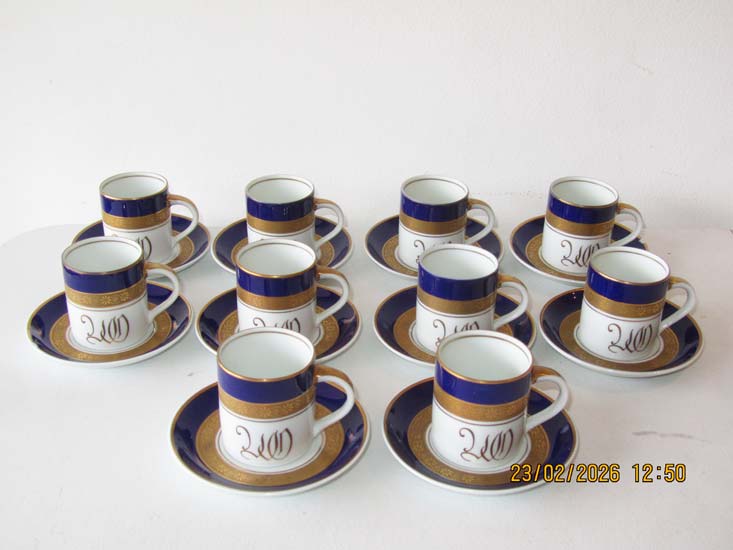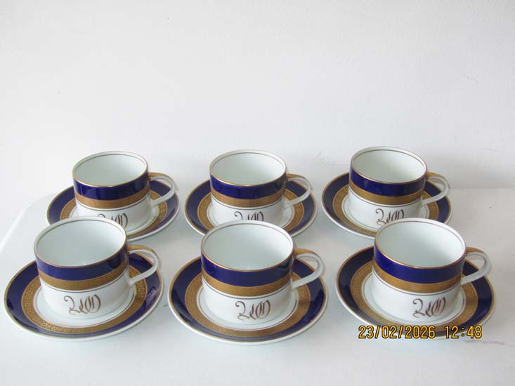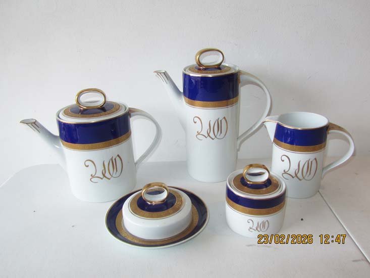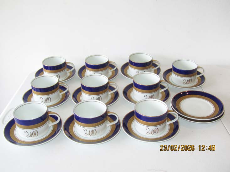 CONJUNTO CAFÉ FRISO AZUL DOURADO PORCELANA