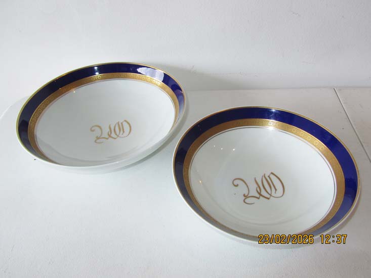 BOWL GR. E TRAVESSA FRISO AZUL DOURADO PORCELANA