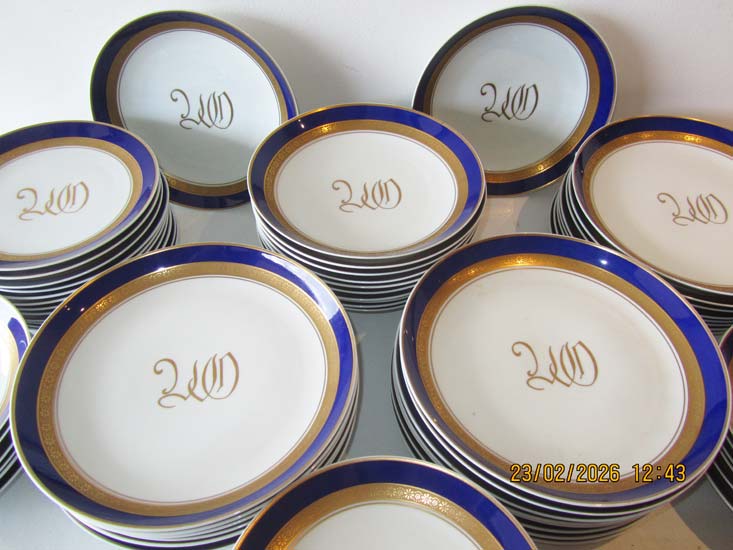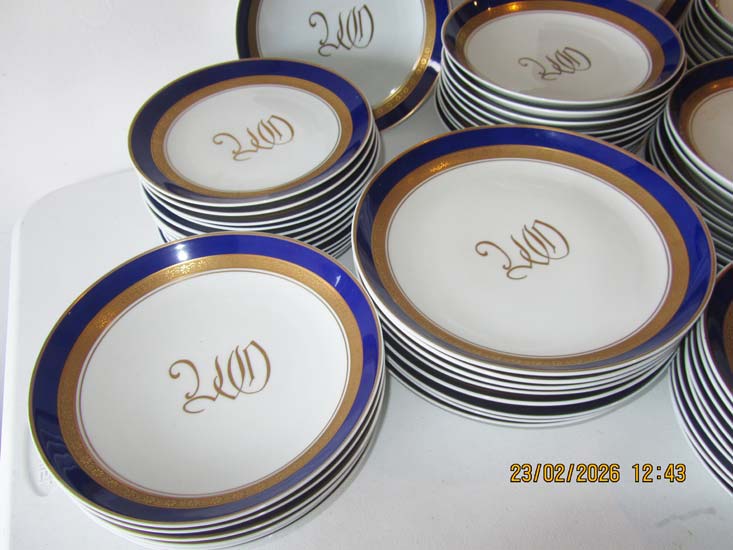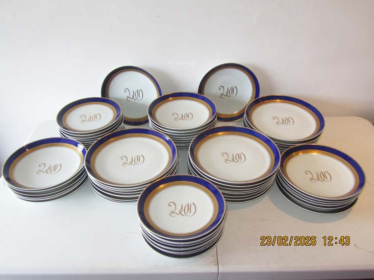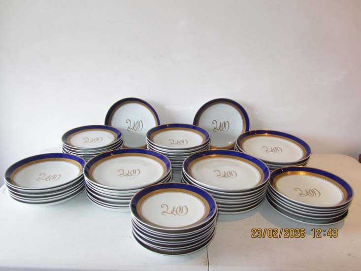 13 PRATOS FRISO AZUL DOURADO PORCELANA