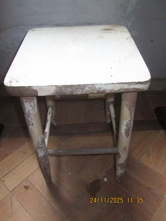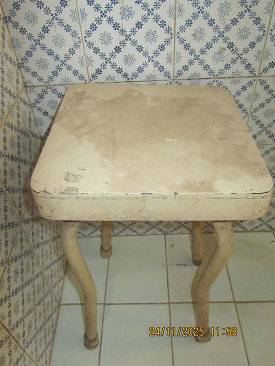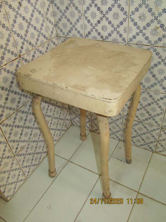 BANQUINHO BRANCO ANTIGO METAL MADEIRA QUADRADO