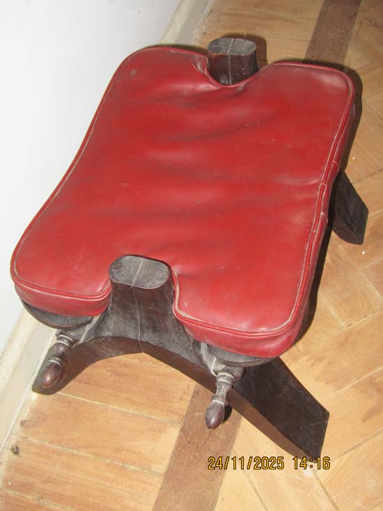BANQUETA CAMELO MADEIRA ALMOFADA COURO