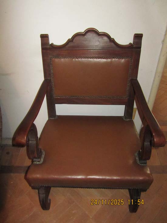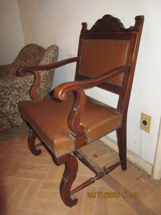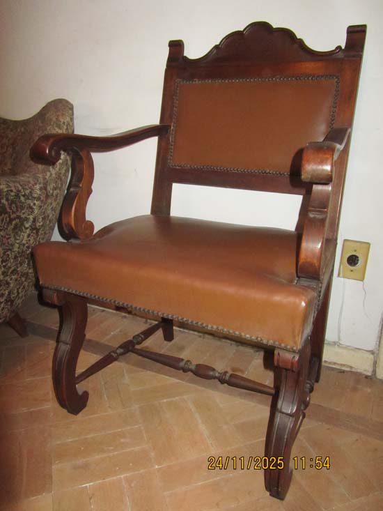 CADEIRA BRAÇO MADEIRA COURO MARROM