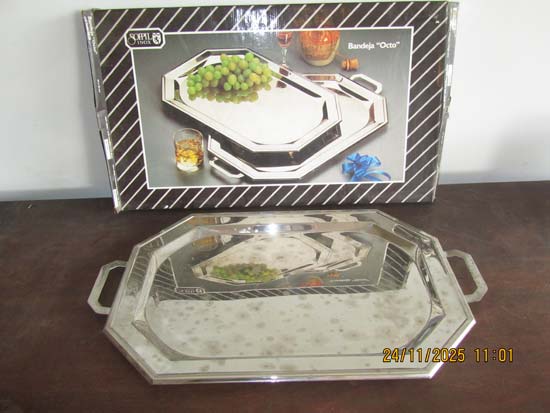 BANDEJA GR. INOX OCTOGONAL NA CAIXA ANTIGA