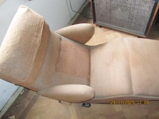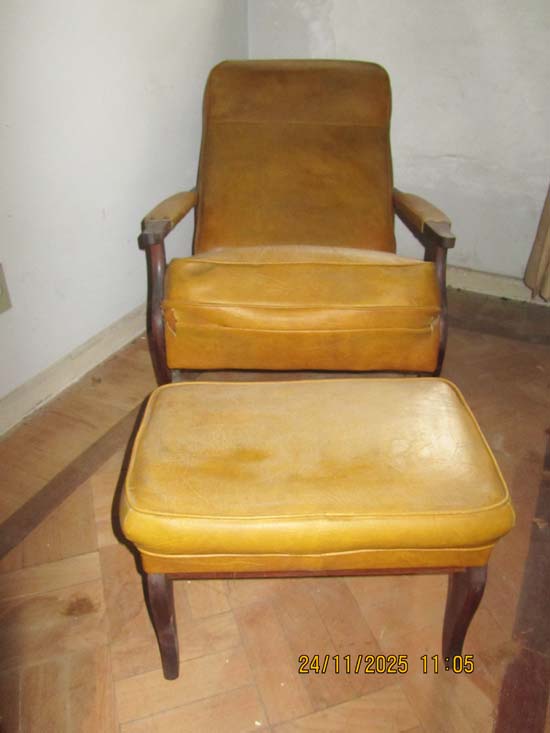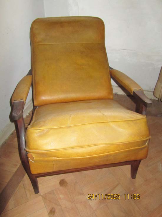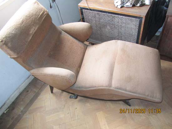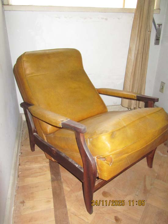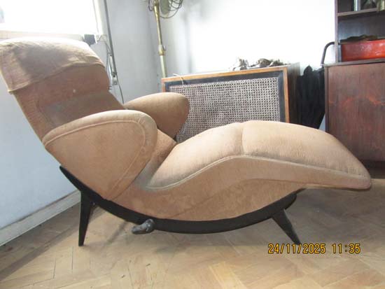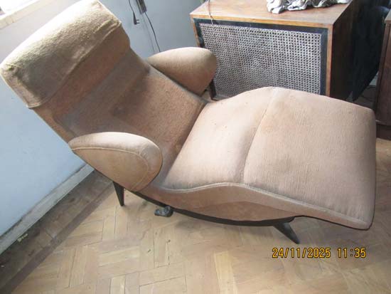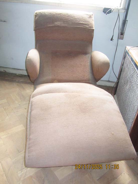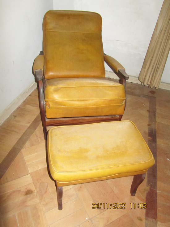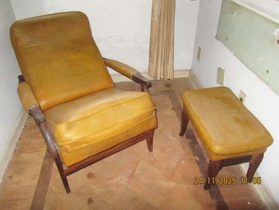 POLTRONA ESPREGUIÇADEIRA PÉ PALITO MADEIRA ESTOFADO MARROM