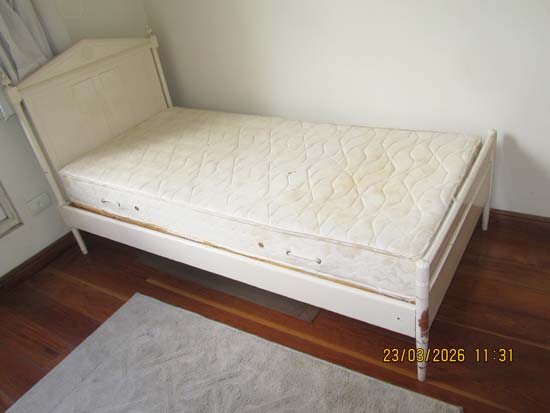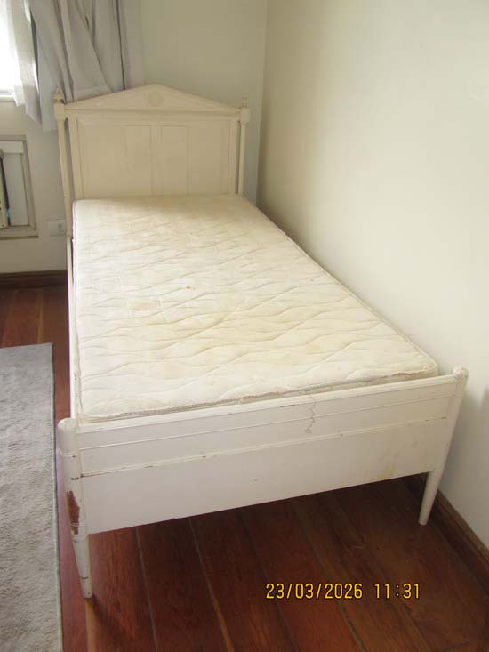 CAMA SOLTEIRO MADEIRA BRANCA COM COLCHÃO