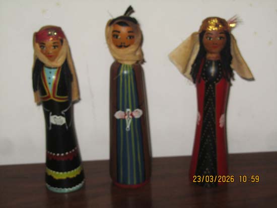 3 ESTATUETAS BONECOS MADEIRA