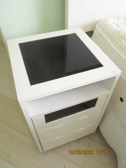 MESA CABECEIRA MDF BR. VIDRO FUMÊ 3 GAVETAS - 0,40 X 0,40