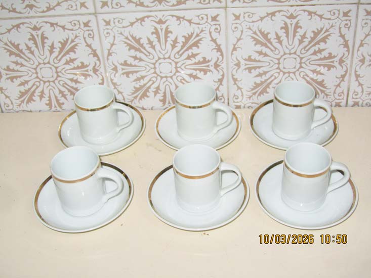 CONJUNTO CAFÉ FRISO OURO PORCELANA BRANCO