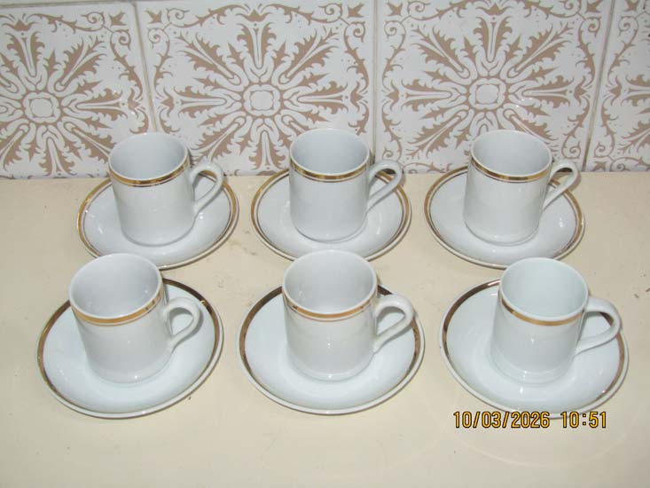 7 XÍCARAS CAFÉ BRANCA FRISO OURO PORCELANA