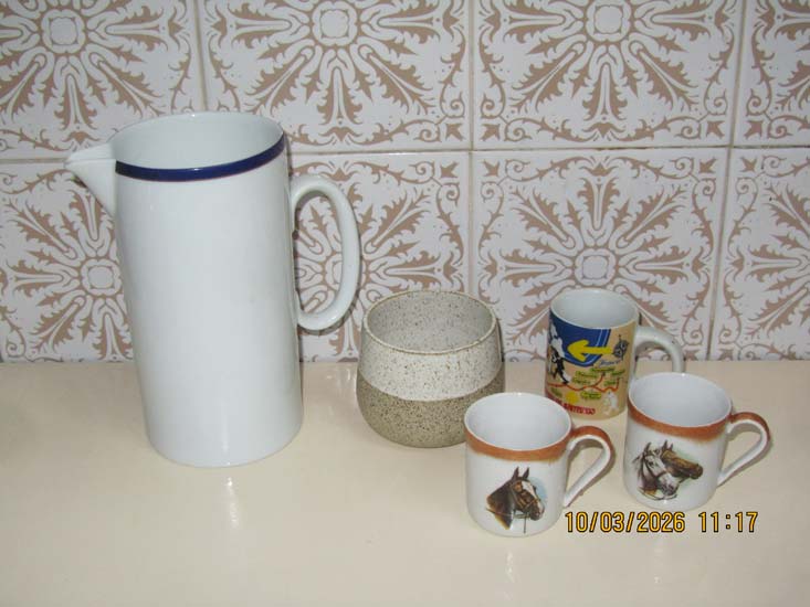 JARRA E AÇUCAREIRO PORCELANA FRISO AZUL