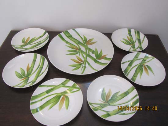 PRATO BOLO E 6 PRATINHOS BAMBÚ PORCELANA BRANCA
