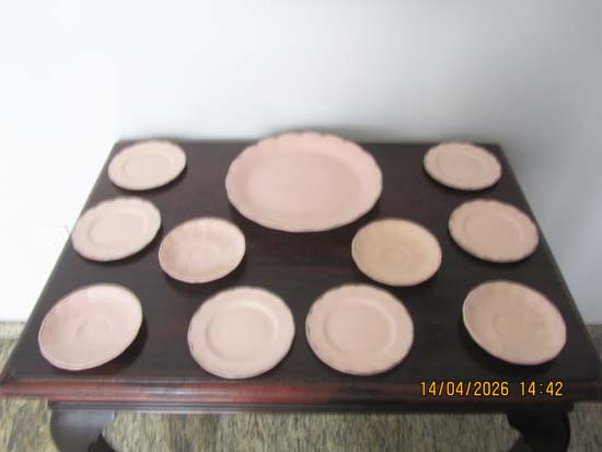 PRATO BOLO E 10 PRATINHOS ROSA PORCELANA