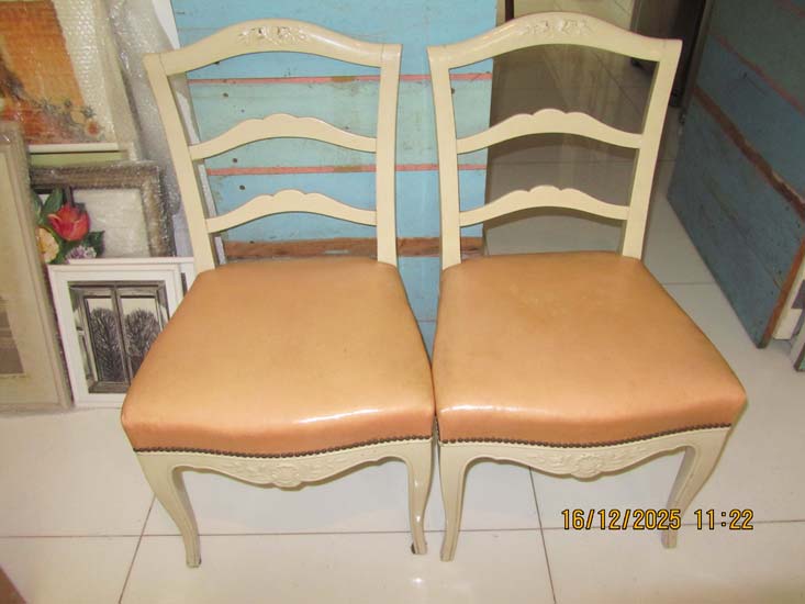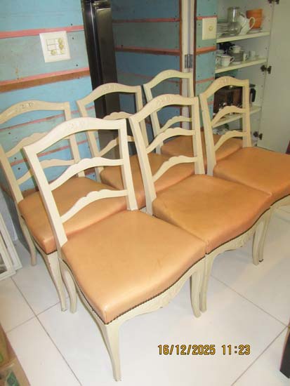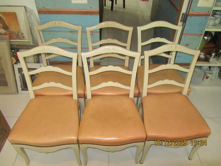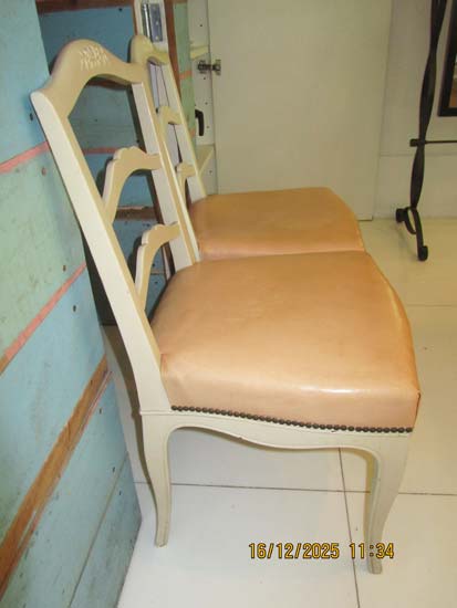 6 CADEIRAS MADEIRA BRANCAS ESTOFADO ROSA COURO