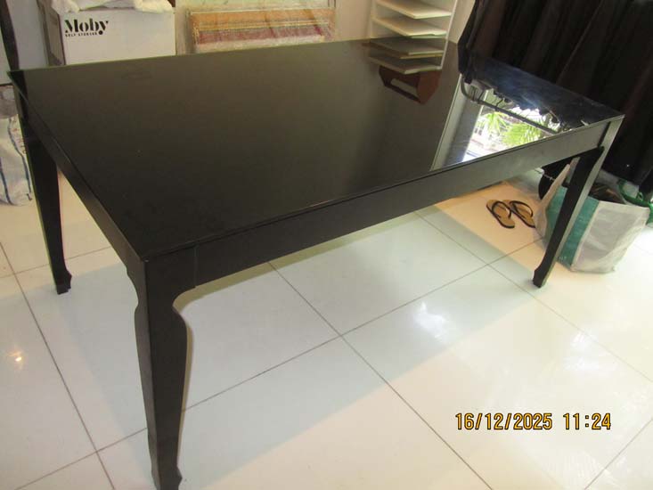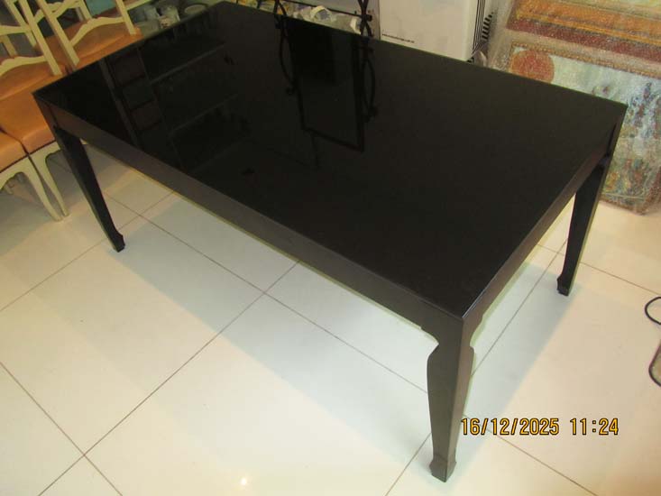 MESA JANTAR MADEIRA PRETA VIDRO FUMÊ - 1,65 X 0,90