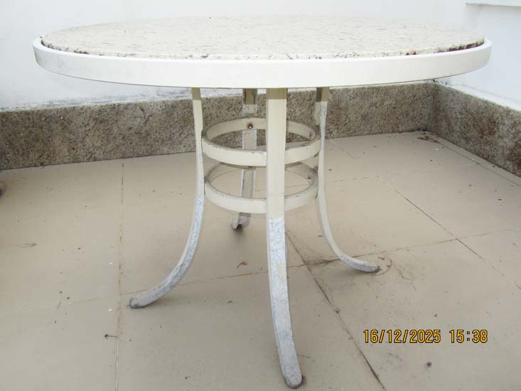MESA JARDIM PÉ ALUMÍNIO TAMPO MÁRMORE - DIAM. 1,00