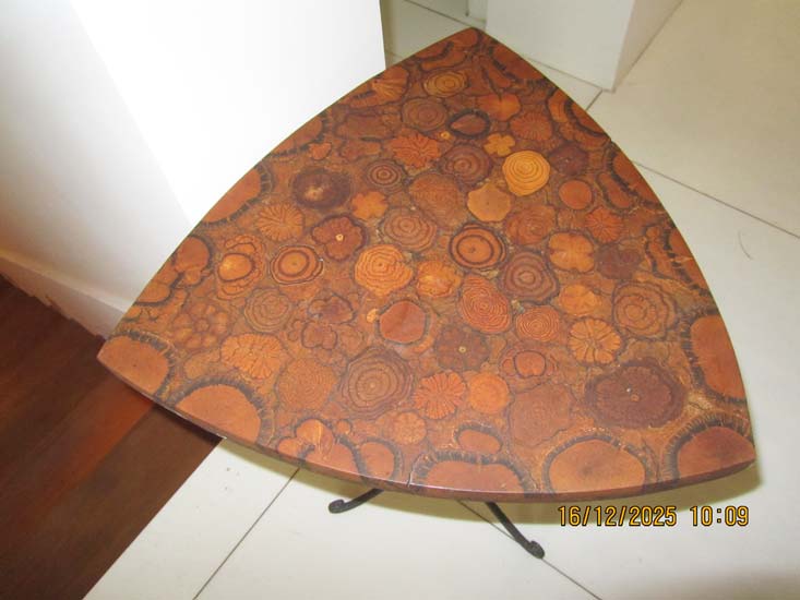 MESA TRIANGULAR METAL MADEIRA