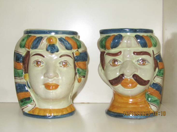 2 VASOS CABEÇA MOURO SICILIANA CERÂMICA
