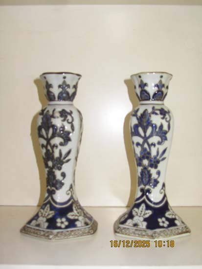 PAR CASTIÇAIS CERÂMICA AZUL BR.