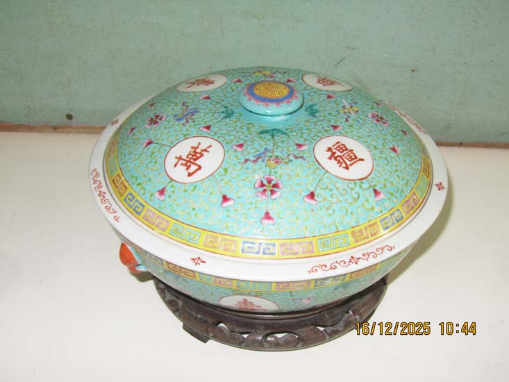 SOPEIRA JAPONESA VERDE PORCELANA COM BASE MADEIRA (REDONDA)